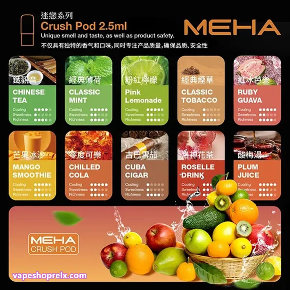 魅嗨五代菸彈(Crush Pod 2.5ml) 是品牌全新升級推出的電子菸彈,容量為 2.5ml,採用食品級安全材料與精密工藝,確保每一次吸入都純淨、持久且口感絕佳。