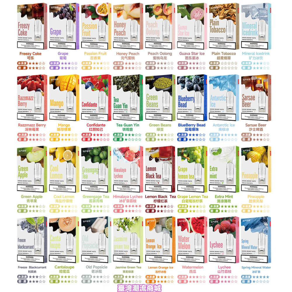 SP2S的煙彈口味系列極具多樣性,涵蓋了從清新水果風味到經典煙草味道,適應了不同用戶的口味需求。以下是我們整理的幾款熱銷口味及其心得,幫助您在眾多選擇中挑選最適合自己的煙彈。