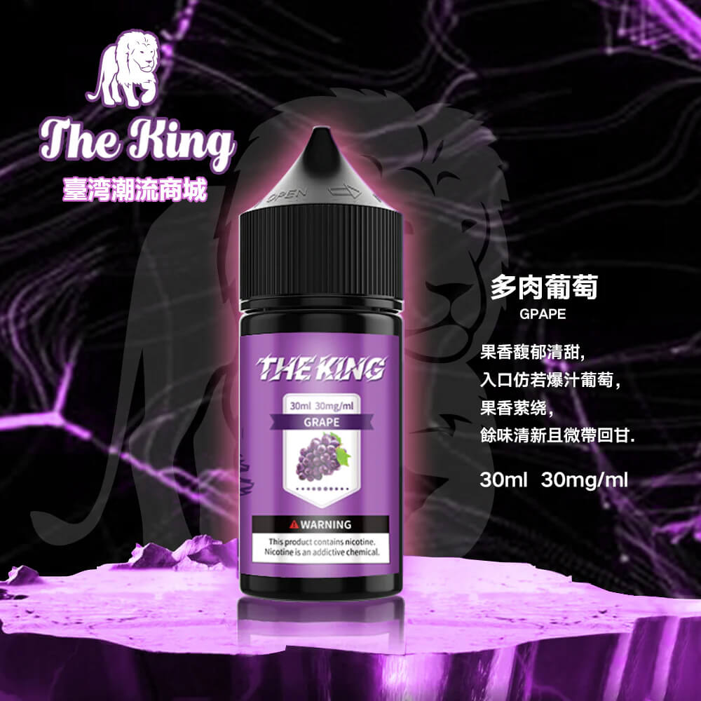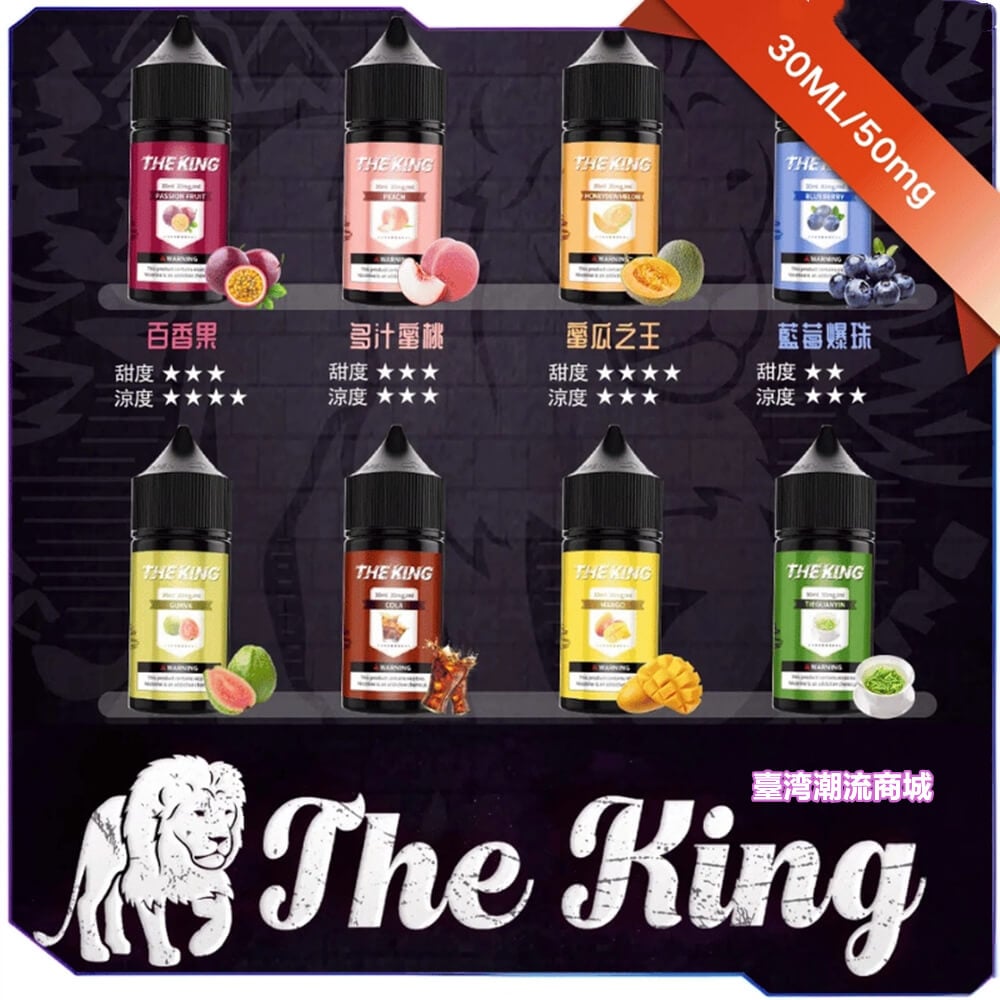 The King 電子煙油,亦被稱為「The King 王者煙油」,主打濃郁風味與高品質體驗,採用尼古丁鹽配方製作,提升順口度與煙霧飽滿度,廣受重度與中度使用者青睞。其產品線強調皇者風範,並以精選原料與高純度尼古丁為主要特色。